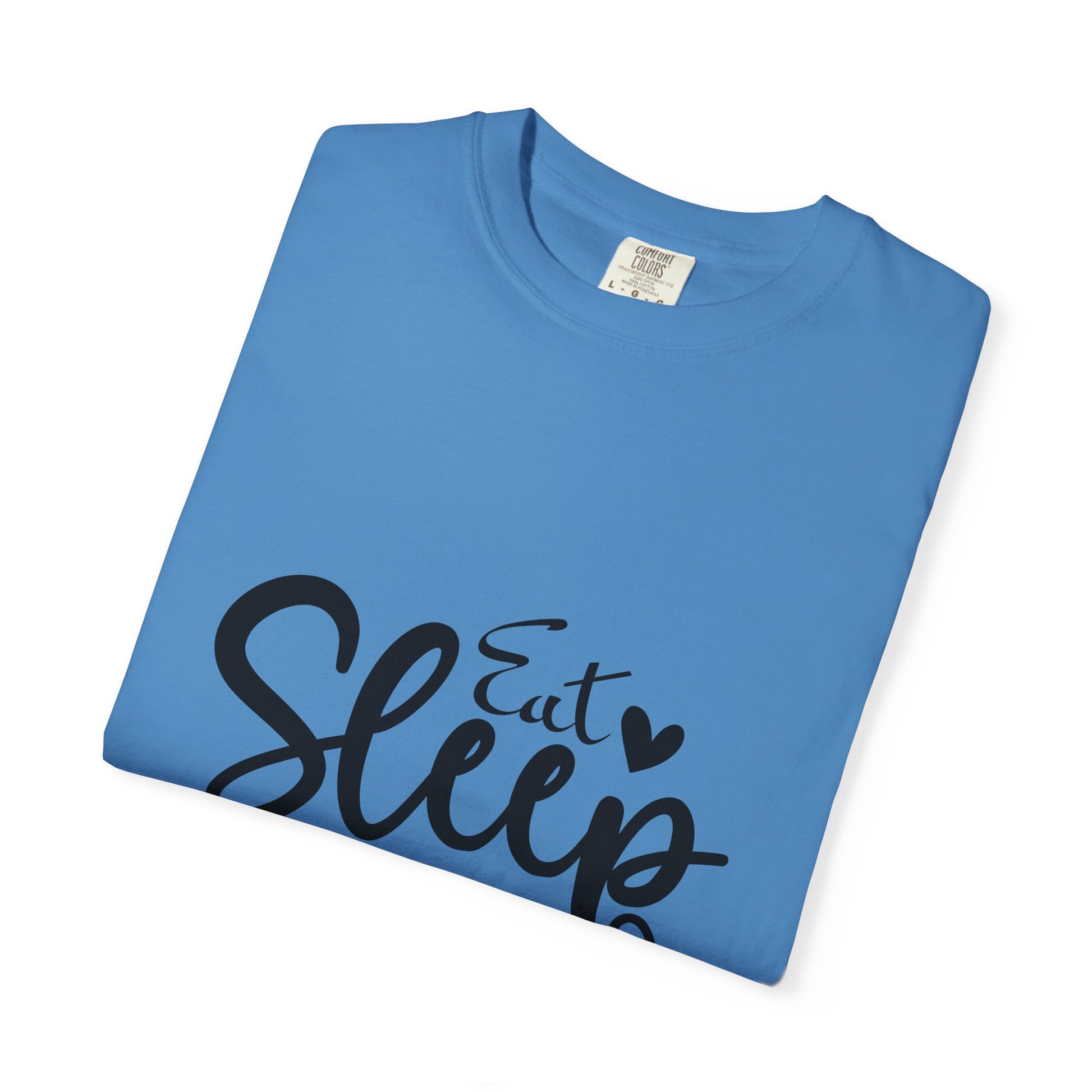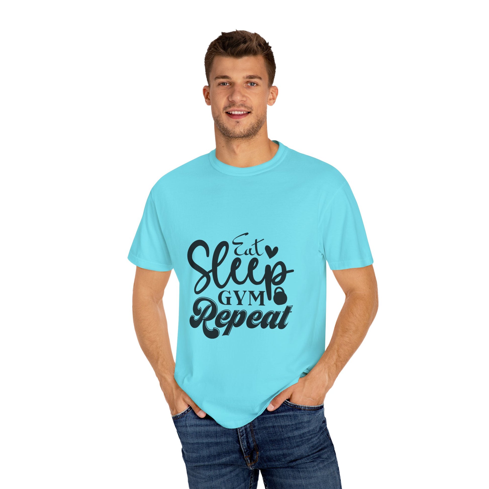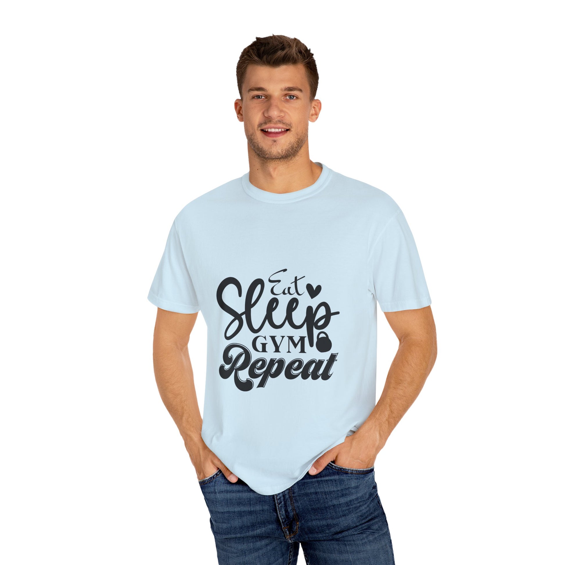 Fitness Lifestyle Tee - Unisex Garment-Dyed T-shirt with 'Eat Sleep Gym Repeat' Design