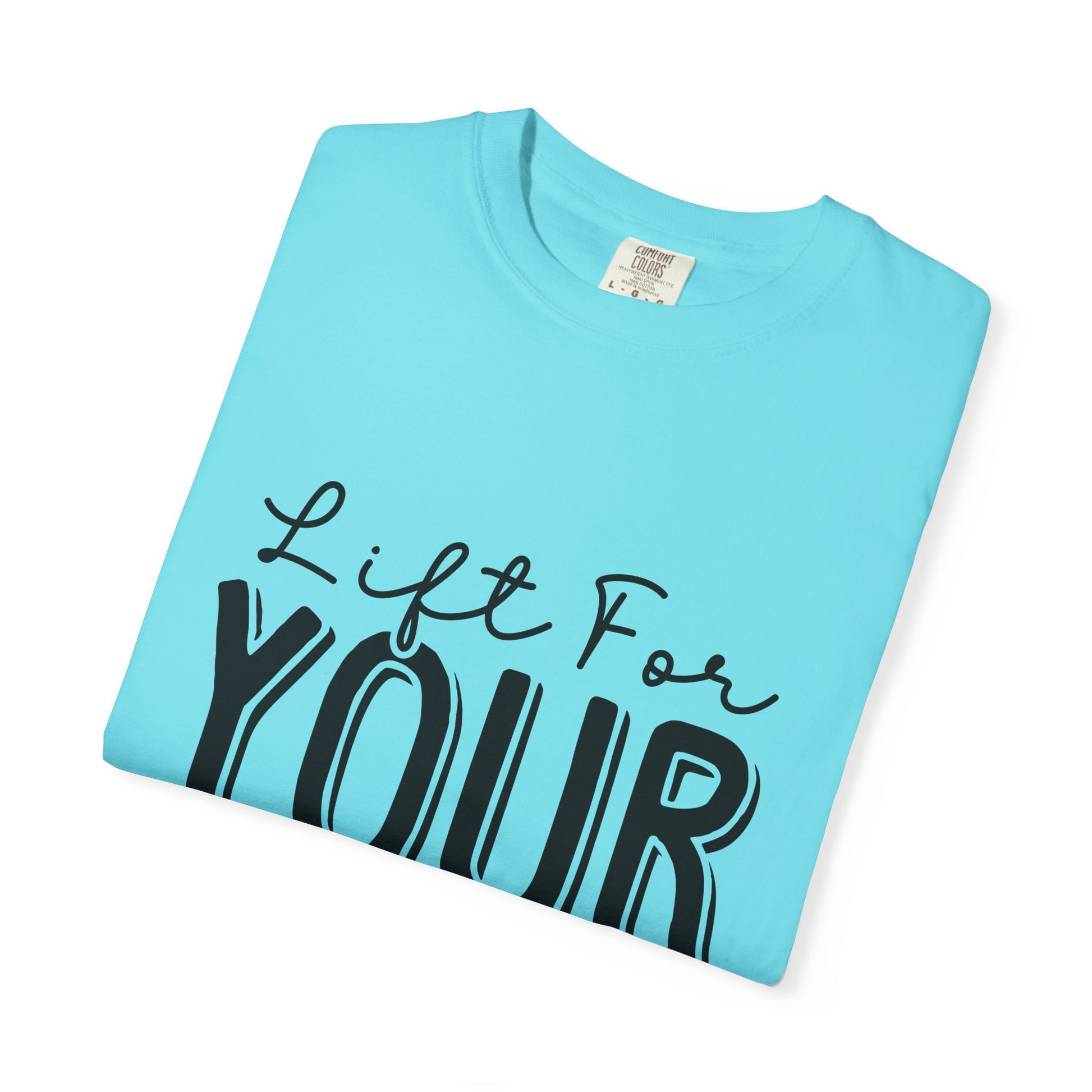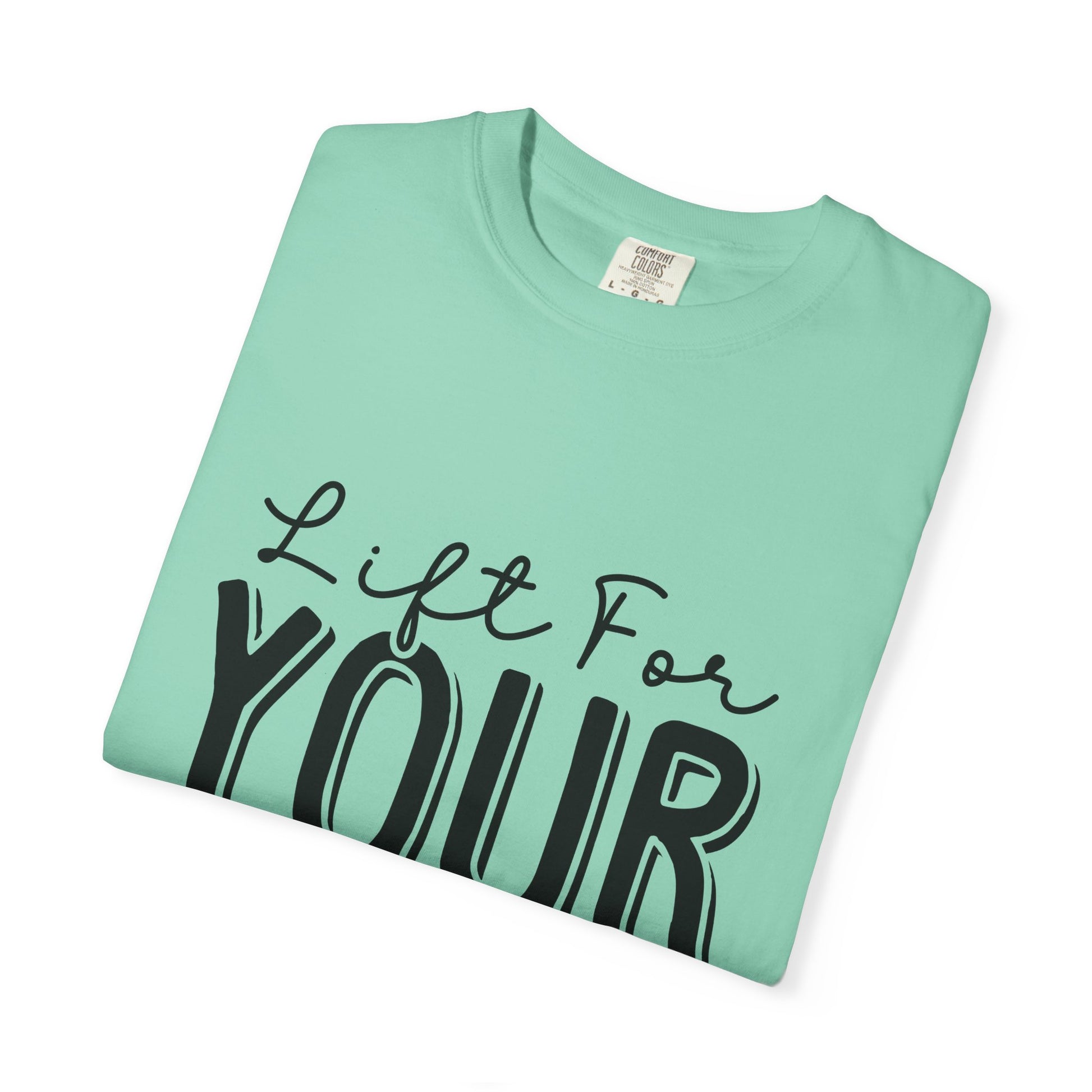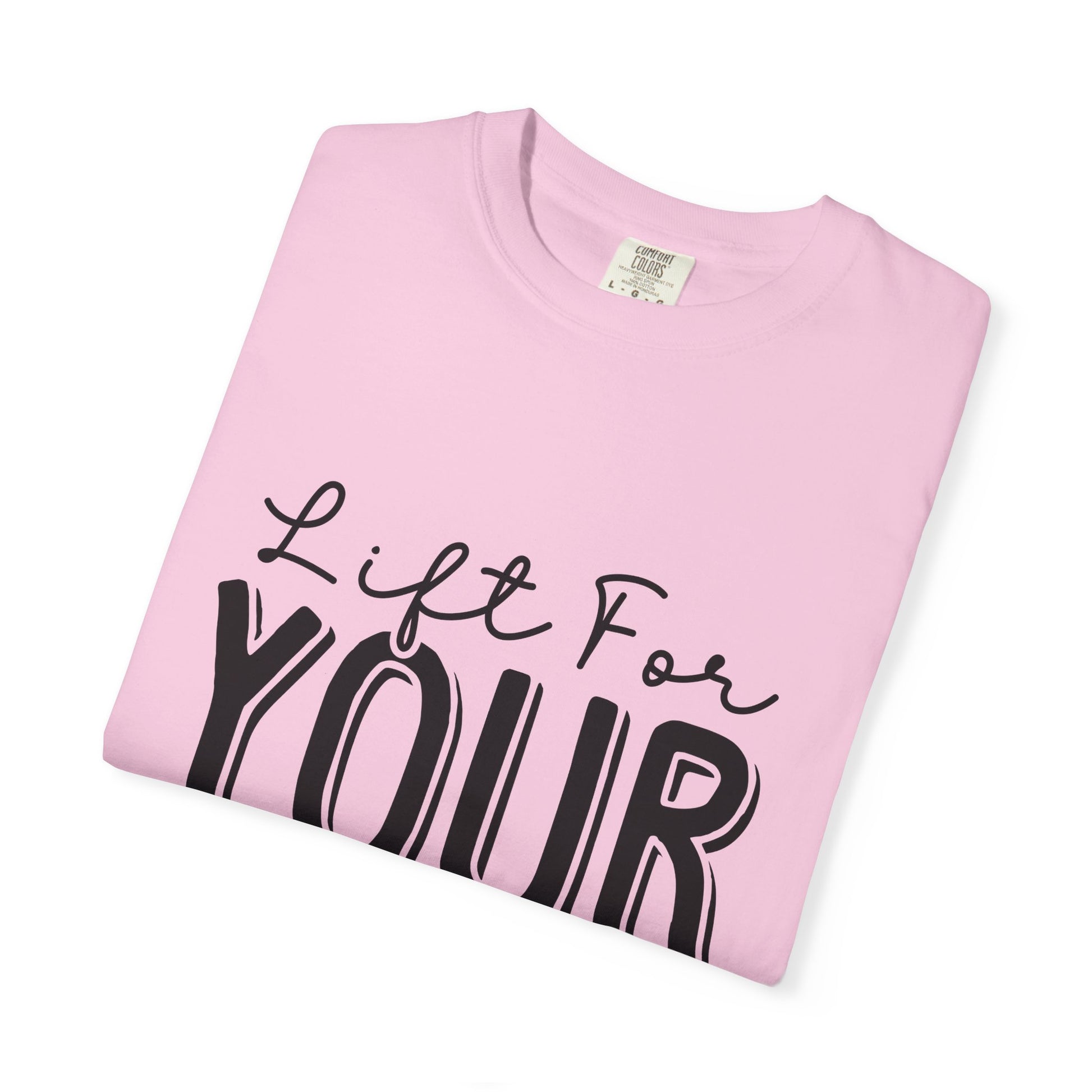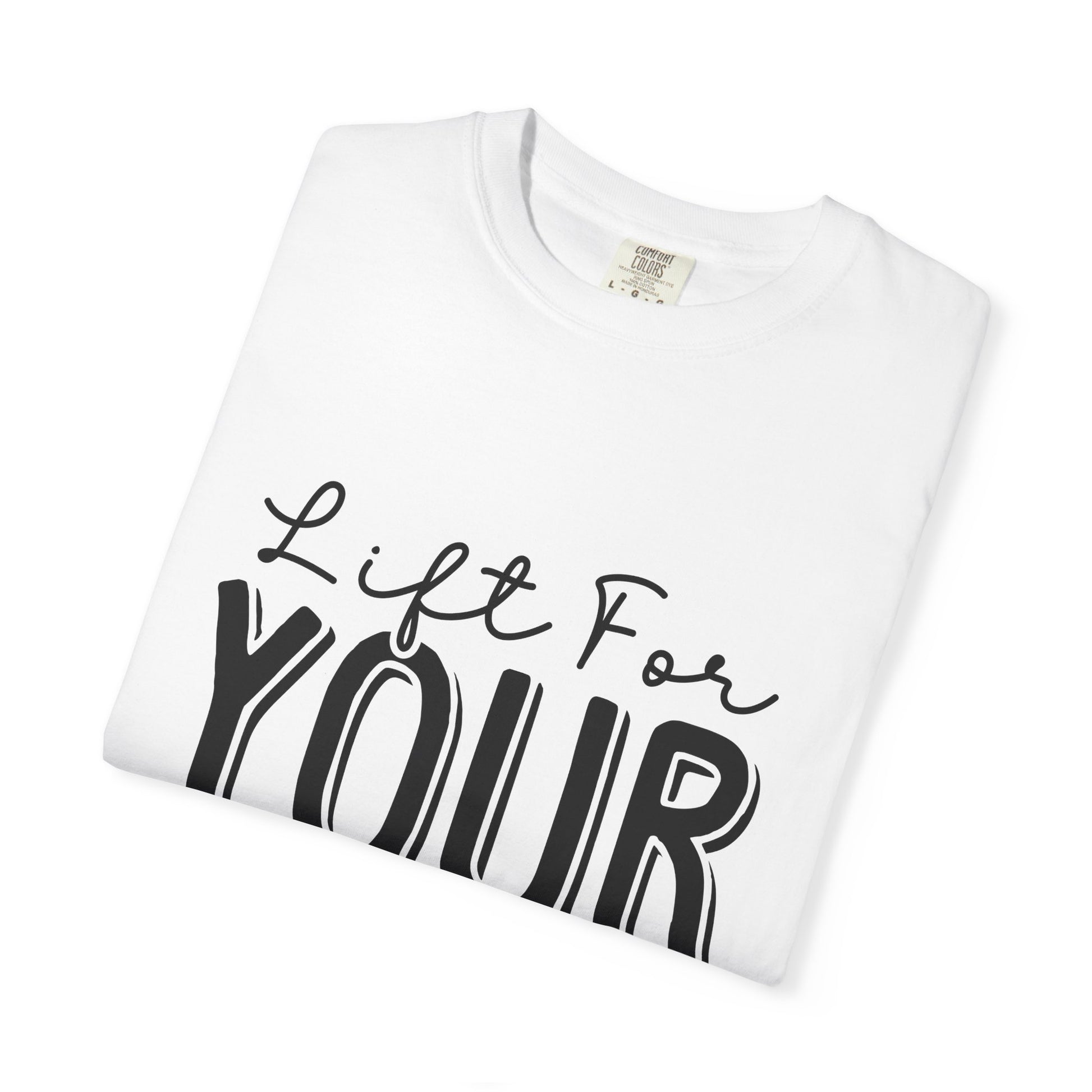 This Unisex Garment-Dyed T-Shirt is an inspirational workout tee with the phrase "Lift for Your Goal". It offers a relaxed fit for comfort in both casual and semi-formal settings. Perfect for fitness enthusiasts and those who love motivational apparel. Ideal for gym-goers, athletes, and anyone who wants a boost of inspiration during their workouts. Great for birthdays, New Year's resolutions, and any fitness-related holidays or events.