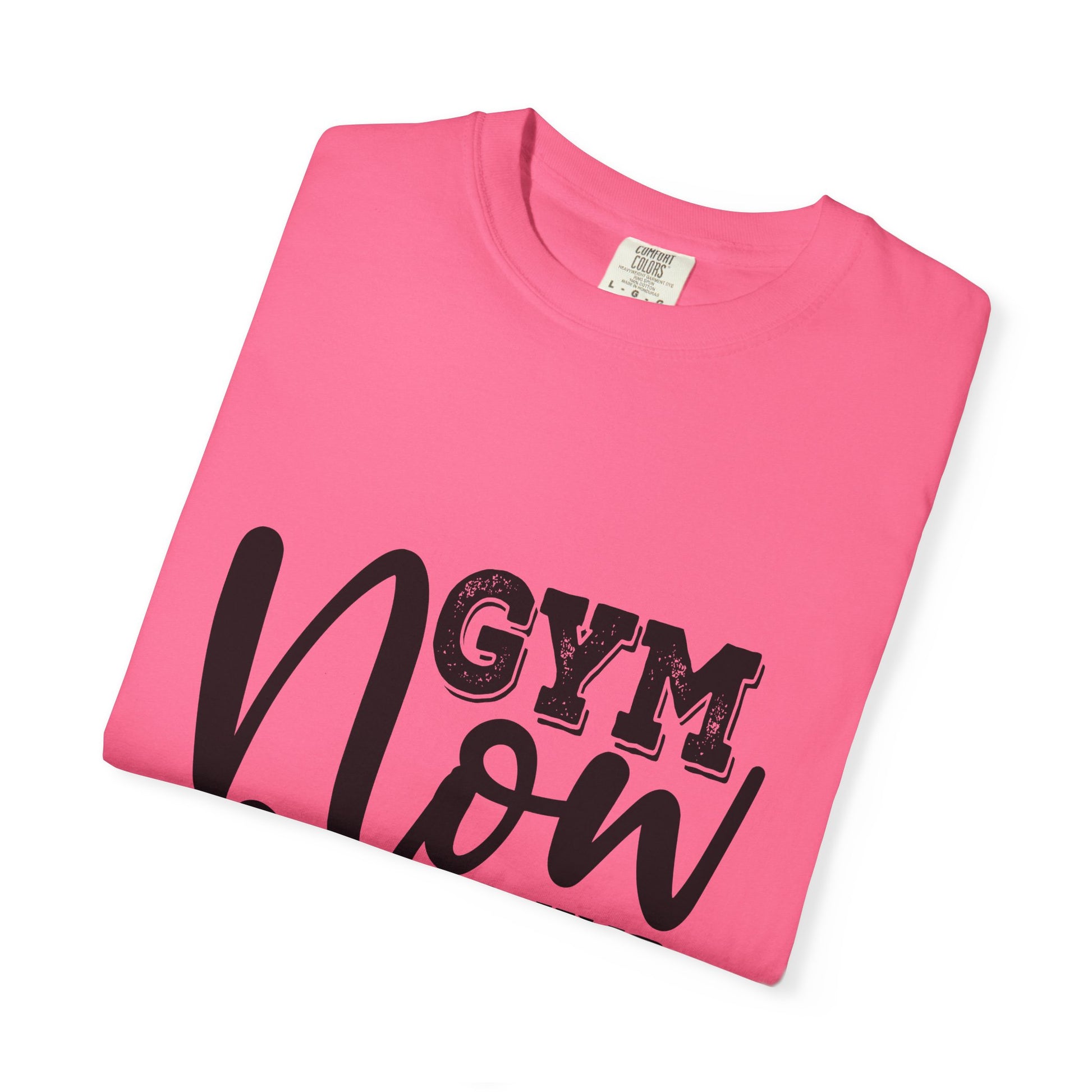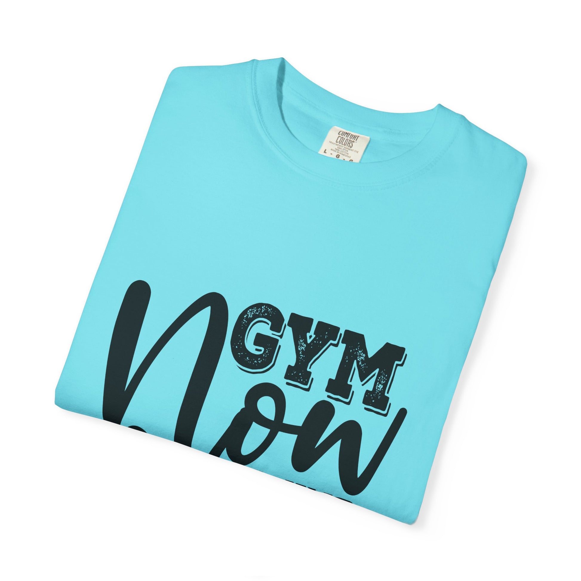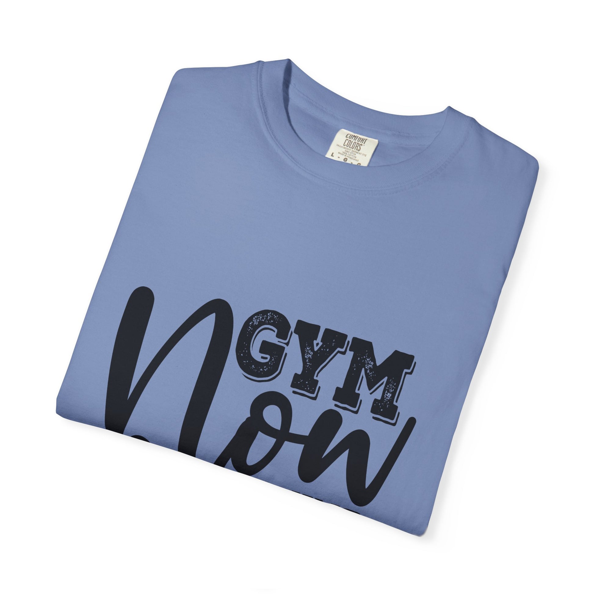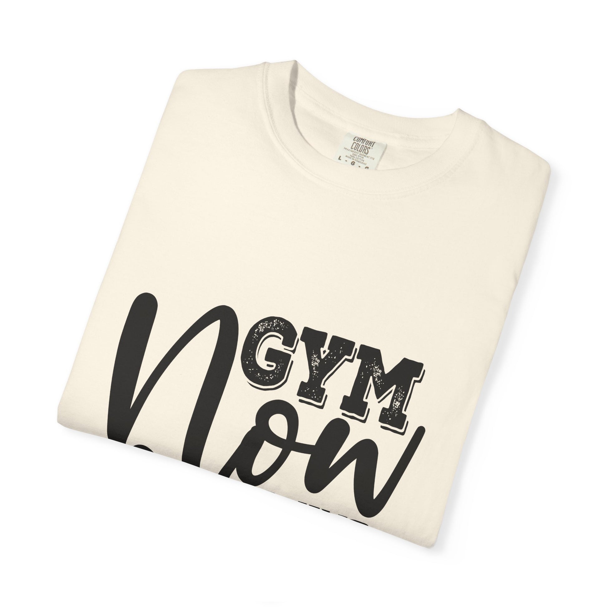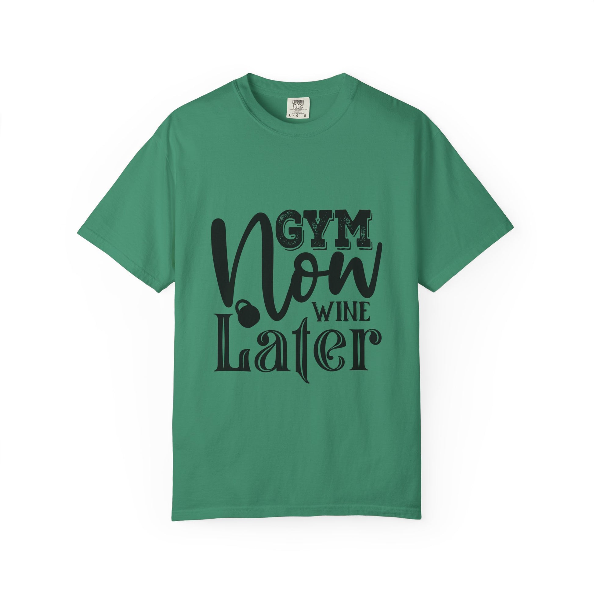 Stay motivated and stylish with this 'Gym Now Whine Later' Unisex Garment-Dyed T-Shirt. Perfect for fitness enthusiasts and gym-goers, this tee exudes a cool and sporty vibe. Whether hitting the gym or running errands, this comfortable and durable shirt is a must-have for those who live an active lifestyle. Ideal for gymwear and casual outings, this tee is relevant for fitness buffs and those who prioritize health and wellness. Perfect for gifting on birthdays, fitness milestones, or just to motivate a friend to stay active.