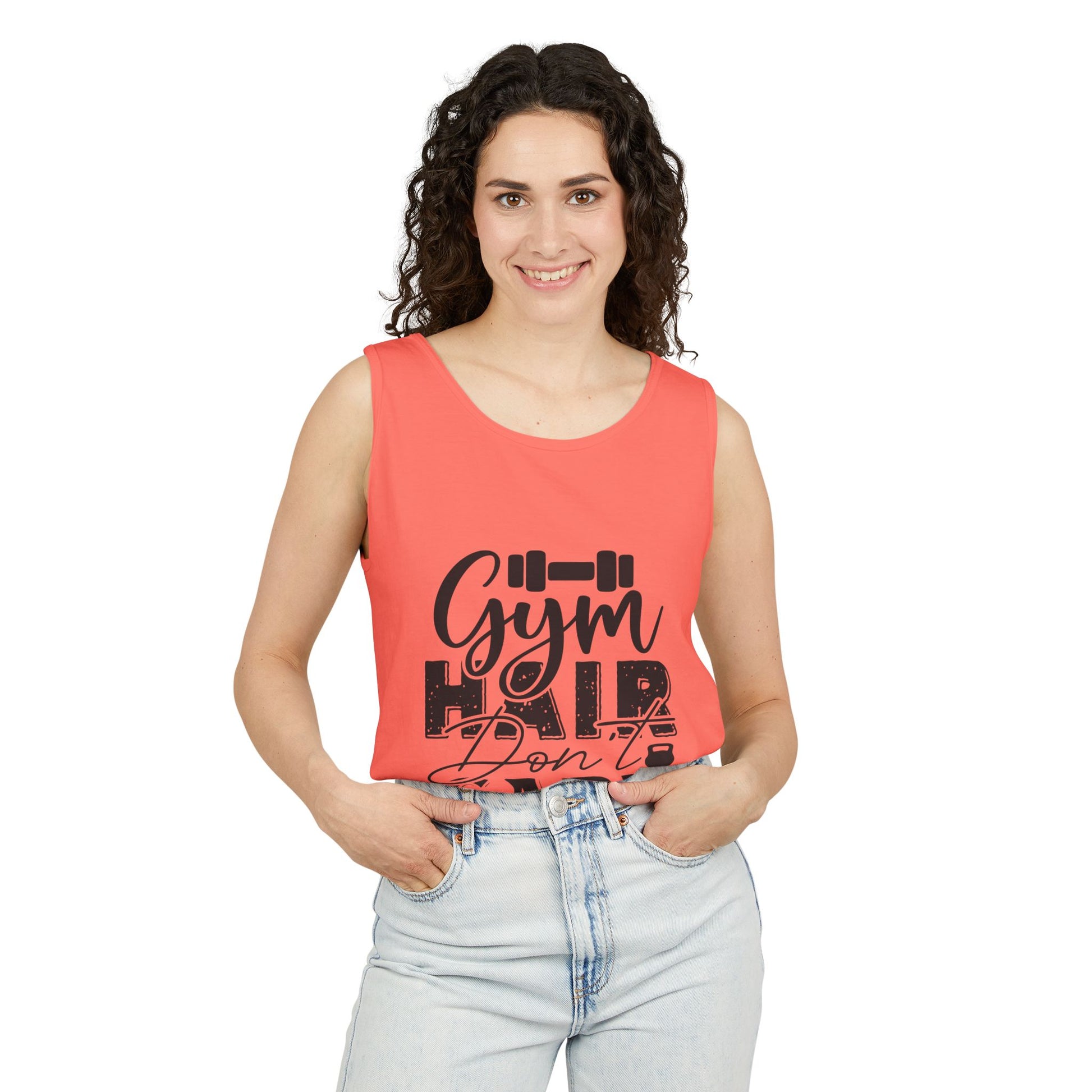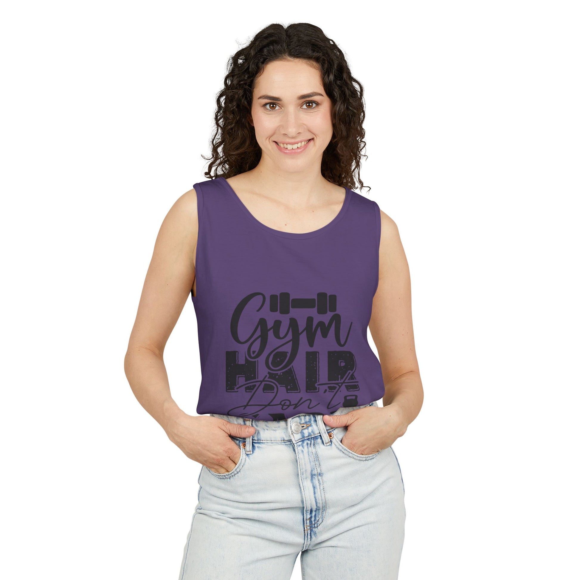 Unisex Garment-Dyed Tank Top – "Gym Hair Don’t Care" Funny Workout Tank