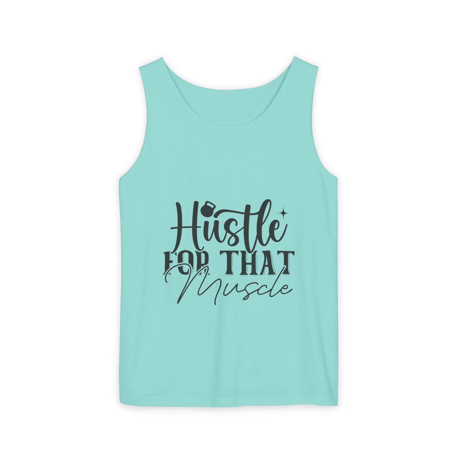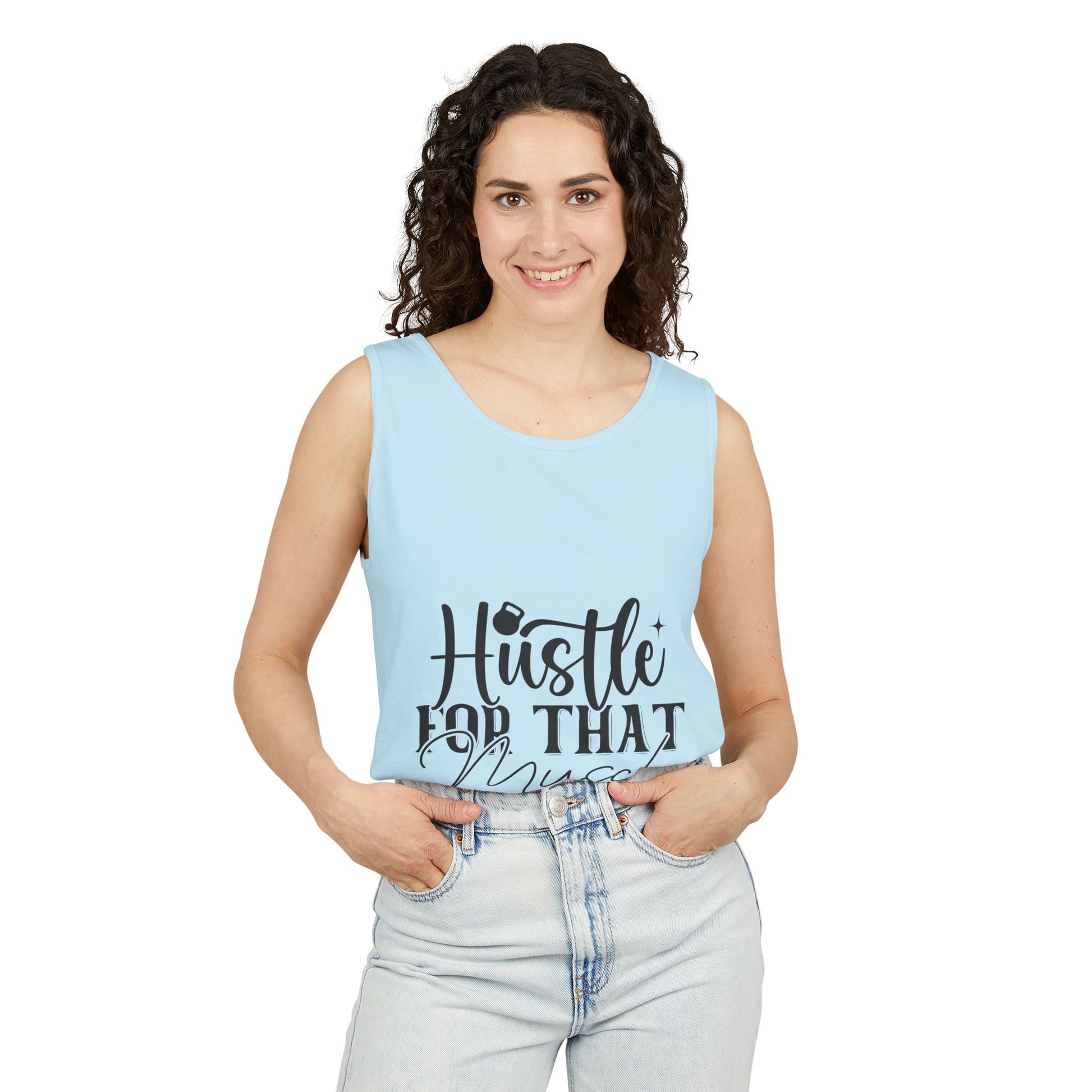 Unisex Garment-Dyed Tank Top – "Hustle for That Muscle" Motivational Gym Tank