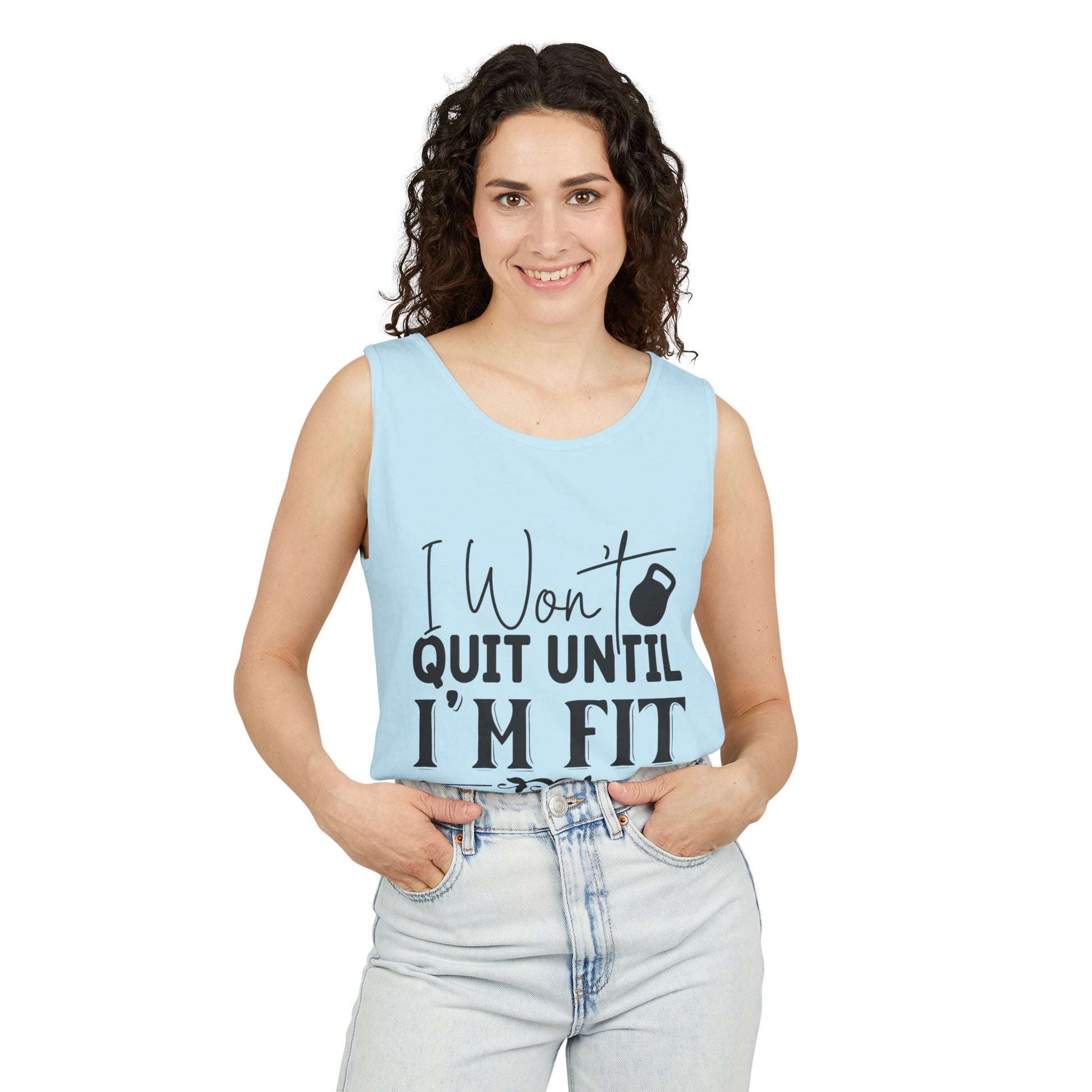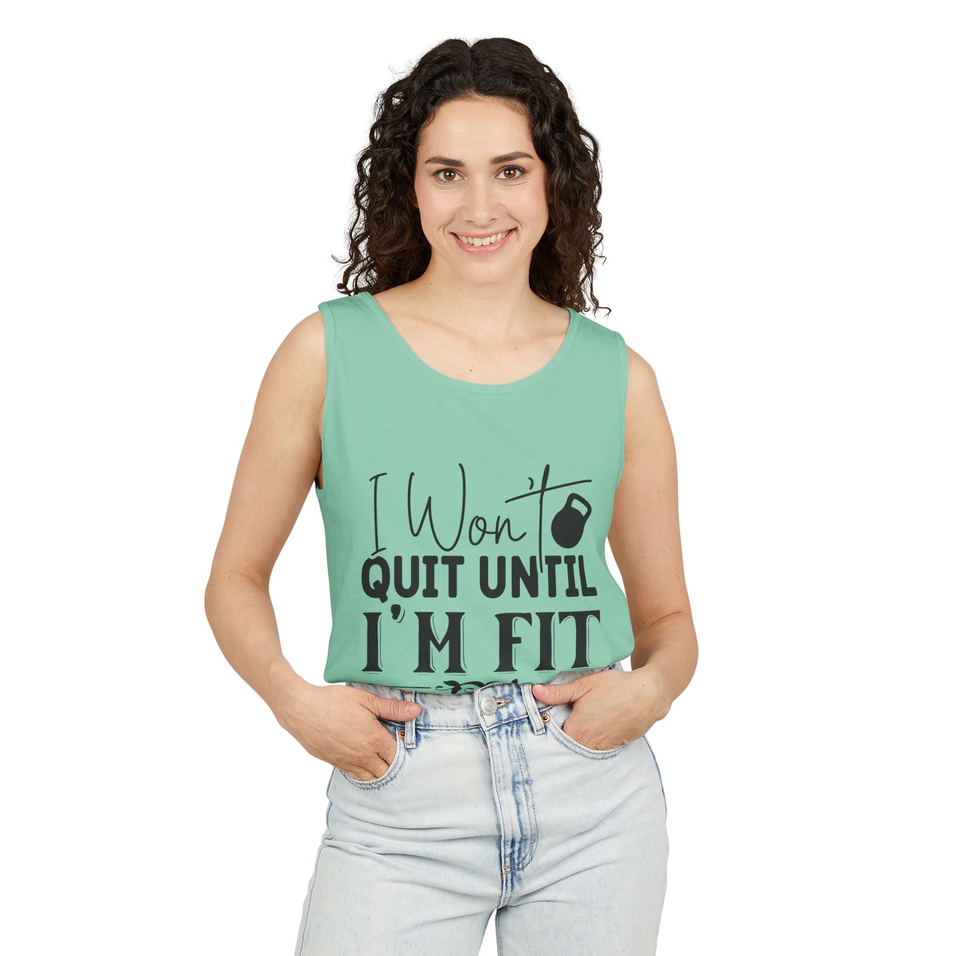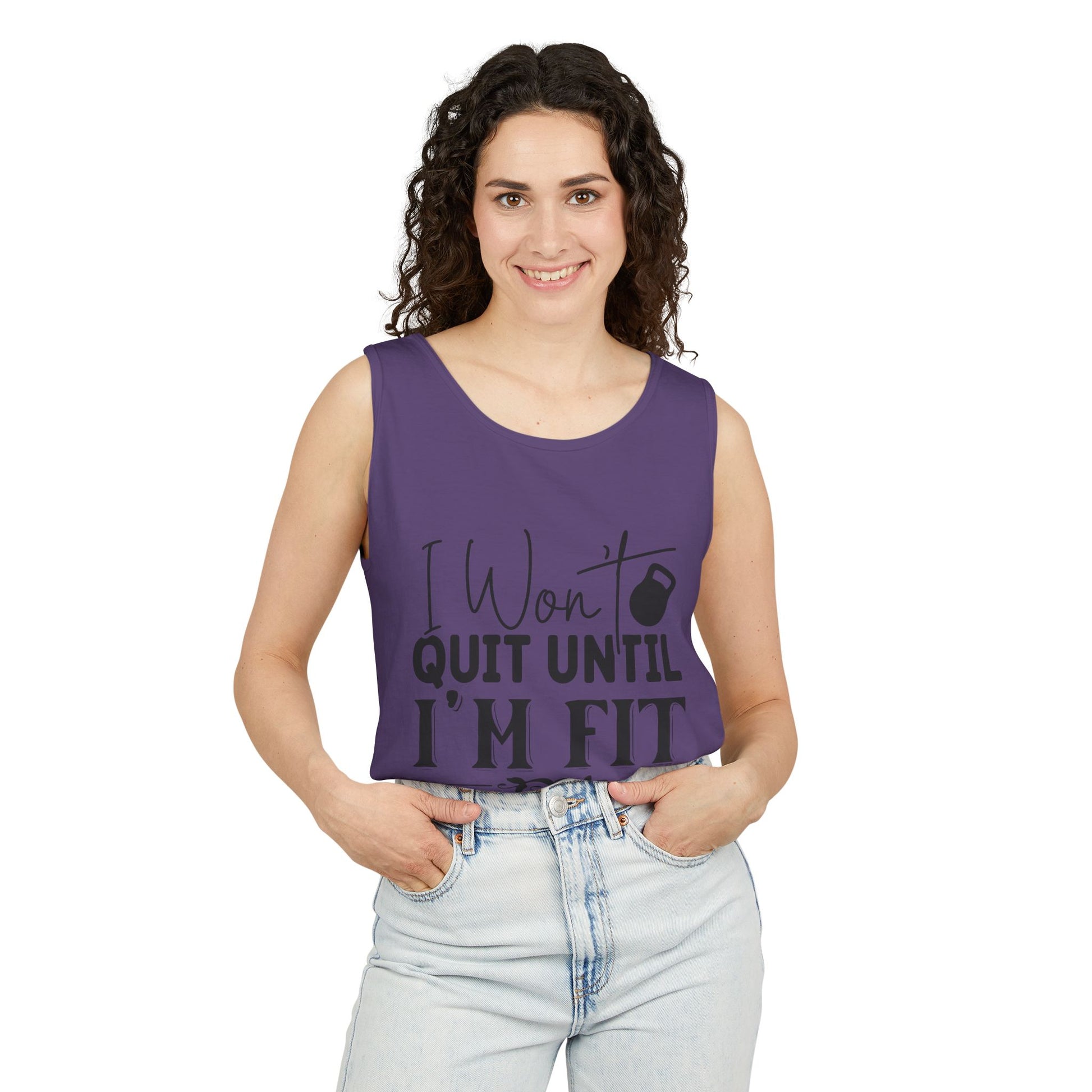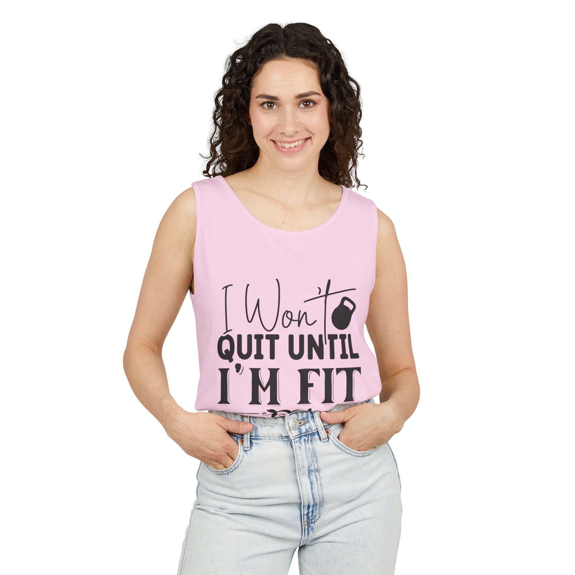 Unisex Garment-Dyed Tank Top – "I Won’t Quit Until I’m Fit" Motivational Fitness Tank